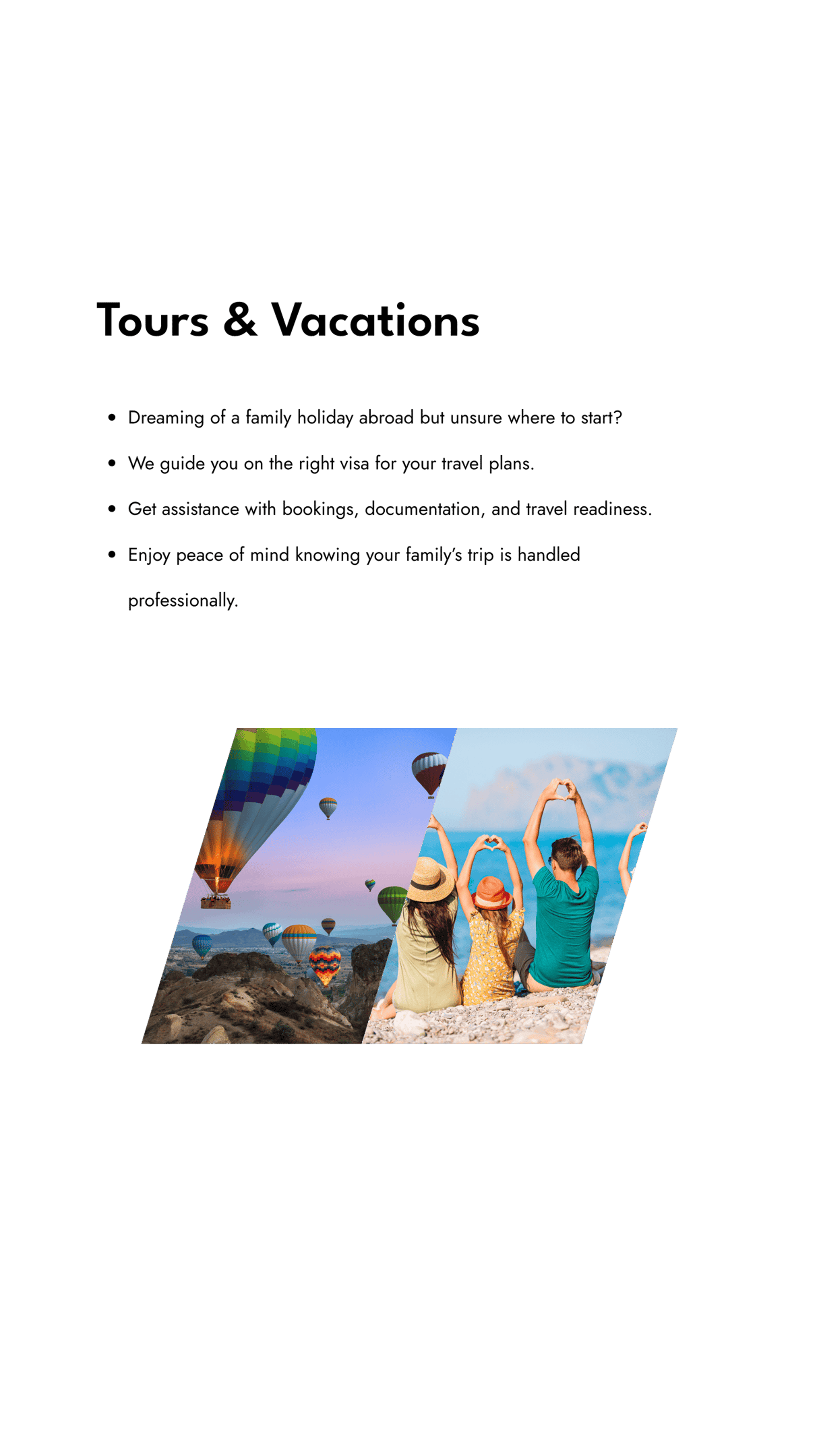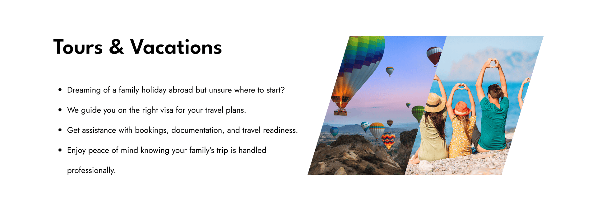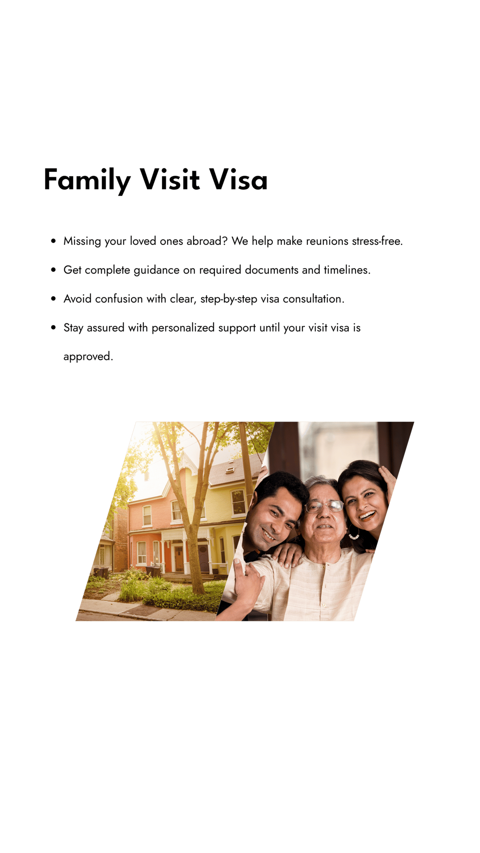 Plan your visit or vacation abroad with confidence. Our expert visa consultation helps bring families closer, travel simple, secure, and joyful.